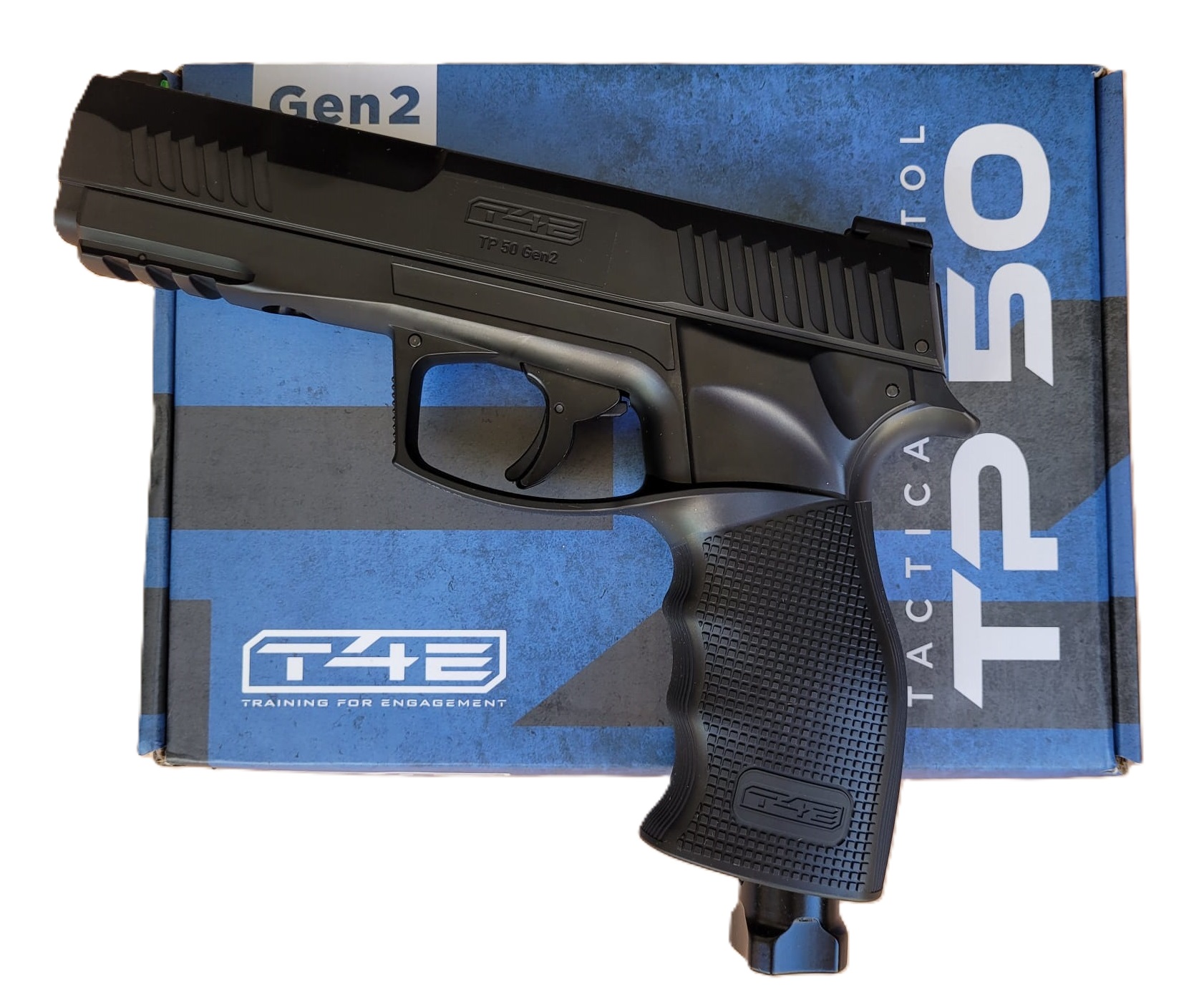 El seguro del gatillo evita disparos accidentales, y el riel Picatinny bajo el cañón permite alojar accesorios adicionales. La T4E TP 50 Gen2 también es totalmente compatible con los numerosos accesorios T4E existentes.